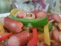 I made dinner for her and our little girl. She had got an idea even though she was sick and got headache. I do not know what it is called, but just mix of sausage, onion, peppers (just well stir-fry^^).